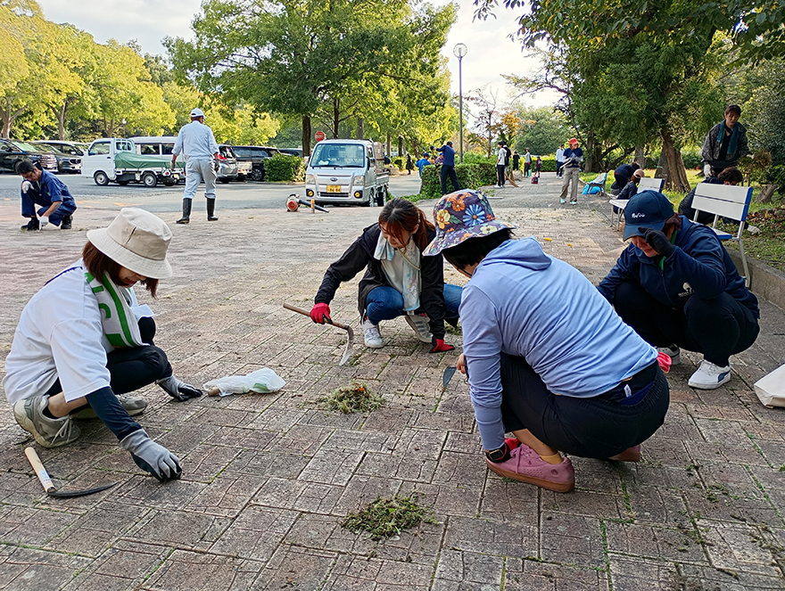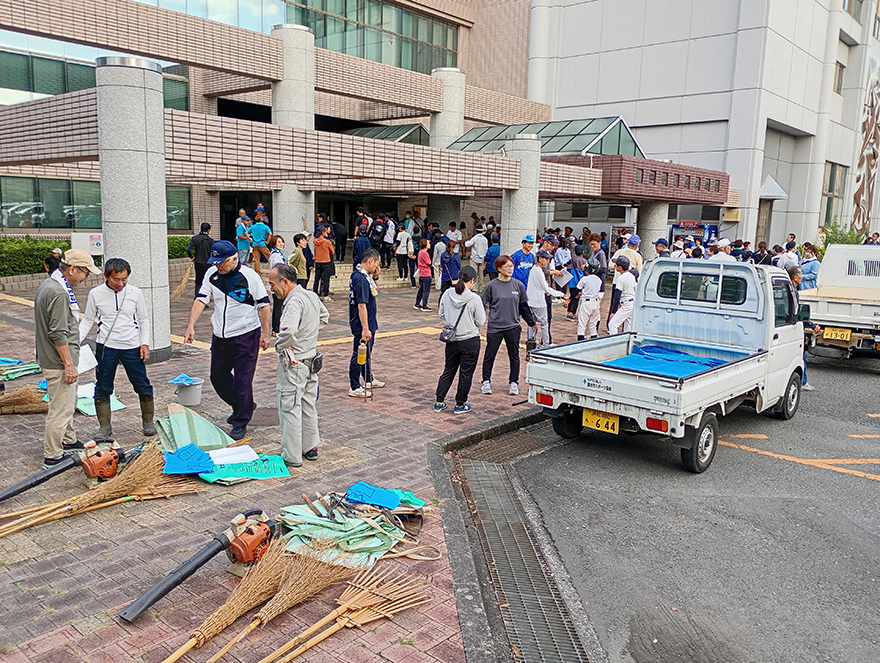 当協会に加盟するスポーツ団体・スポーツ少年団では、春と秋に「かぶと塚 クリーンアップ作戦」と題してかぶと塚公園のボランティア清掃活動なども行っています。9月27日に行われた「かぶと塚 クリーンアップ作戦」は、子どもから大人まで参加者250人におよぶ規模となりました。