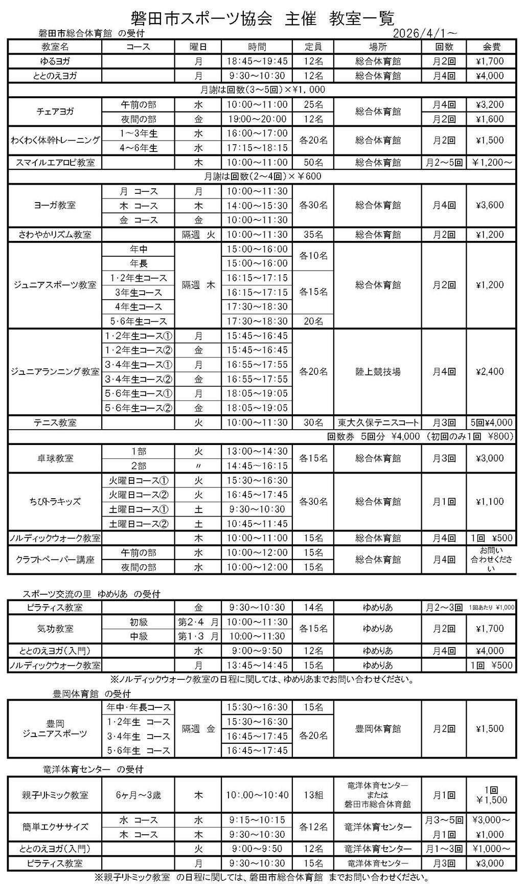 磐田市総合体育館(0538-32-4236) 豊岡体育館(0539-63-0036) ゆめりあ(0538-38-4150)