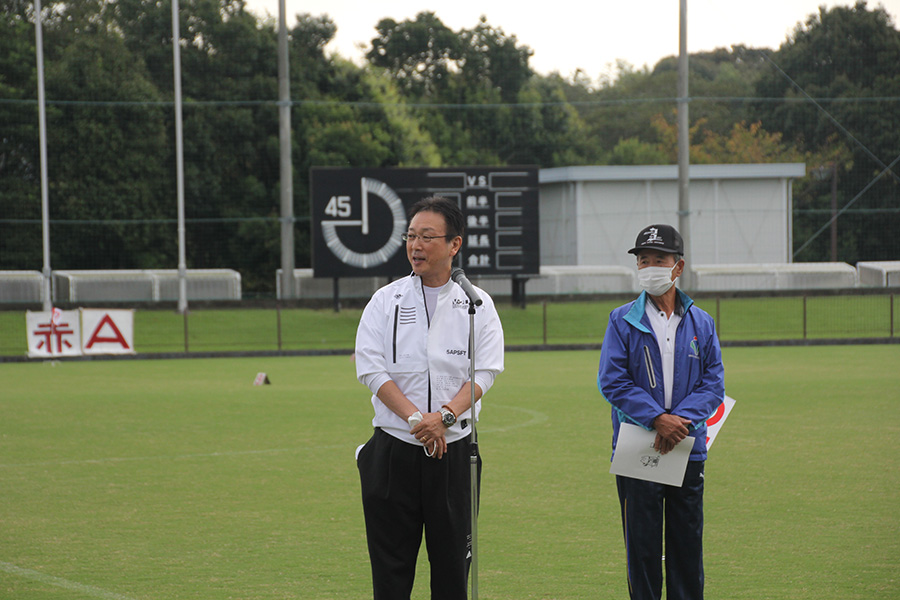 開会式にて、長年グラウンドゴルフの普及及び本大会の開催にご尽力賜りました、磐田市グラウンド・ゴルフ協会へ、渡部修磐田市長より感謝状が贈呈されました。