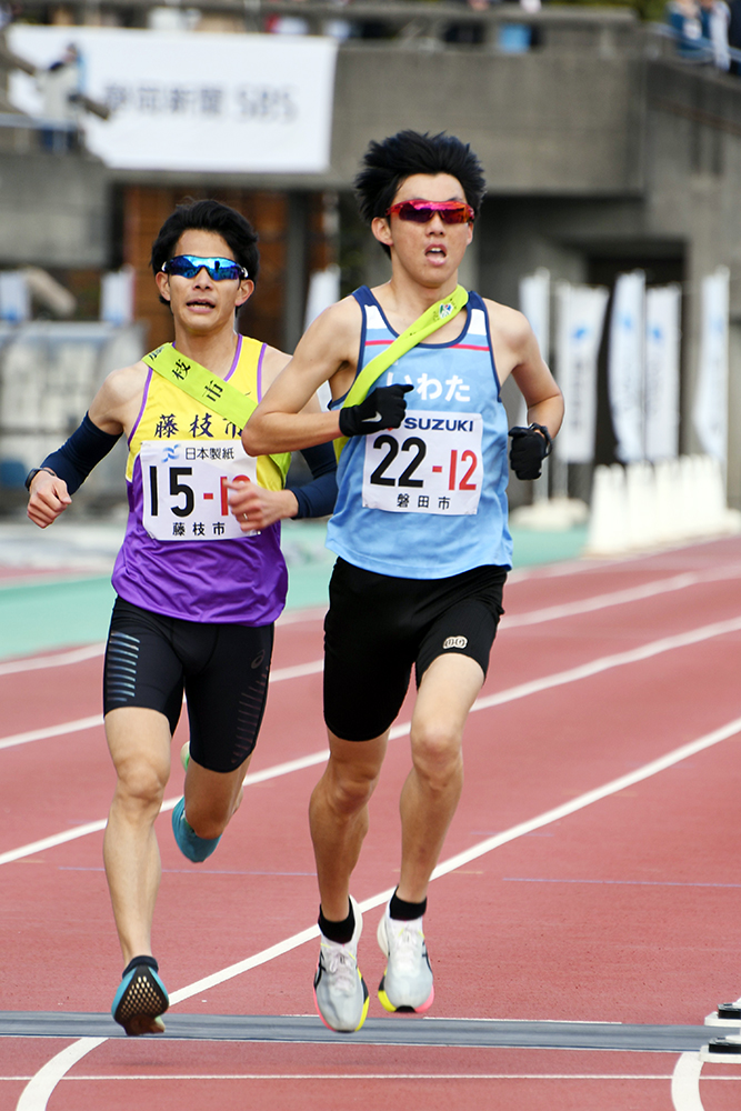 今回は2時間17分42秒のタイムを記録、これは前回の2時間21分08秒を大幅に縮める好タイムです。好天に恵まれ全体的にハイペースとなった今大会、第1区の中村選手(豊岡中)が市の部7位の走りで流れを作ると、第7区温井選手(神明中)が区間賞の走りを見せるなど、どの選手も精一杯の走りでタスキを繋ぎました。最後は第12区の峐下選手(NTN)が気迫の走りで市の部11位でフィニッシュ。入賞にはあと一歩届かなかったものの、前回より大幅にタイムを縮められたことが評価され、敢闘賞を受賞しました!また、併催事業の小学生1500メートルでも磐田市の選手が大活躍!走った選手もサポートにまわった選手も、全員が一丸となって参加してきました。